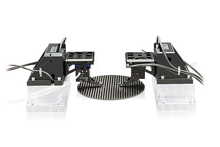 两套系统均可用于单边或双边定位任务。交付物范围包含一个高性能数字控制器(E-712)、用于极速定位的带算法的固件程序和一个广泛的软件包。配套的六足位移台控制器(C-887)随并联运动装置一同发货。