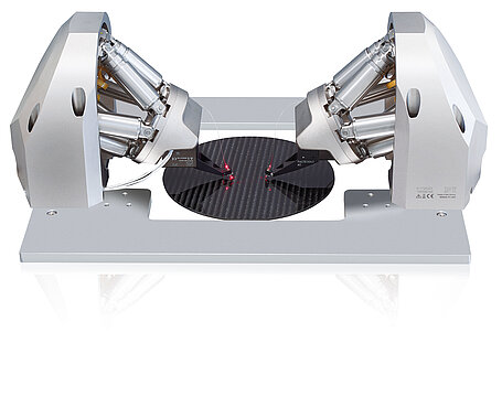 用于定位光纤或光学部件的堆叠系统可在三条轴上操作进行粗定位,行程长达25毫米,最小位移为2微米,最大速度为20毫米/秒。六足位移台在X、Y和Z向上的行程分别为±6.5、±16和±8.5毫米,三条旋转轴上分别为±14.5、±10和±10度。最小位移分别为0.1微米。系统工作时的最大速度为10毫米/秒,可精密定位空间中任意点上、甚至是不同角度上的用户自定义旋转中心(枢轴点),如定位光纤阵列。NanoCube®负责两套系统的精定位,三条轴上的工作行程均为100微米,最小位移为2.5纳米。对于超过100微米 x 100微米的区域扫描,定位时间小于1秒,峰值强度的最大偏差为0.02分贝。