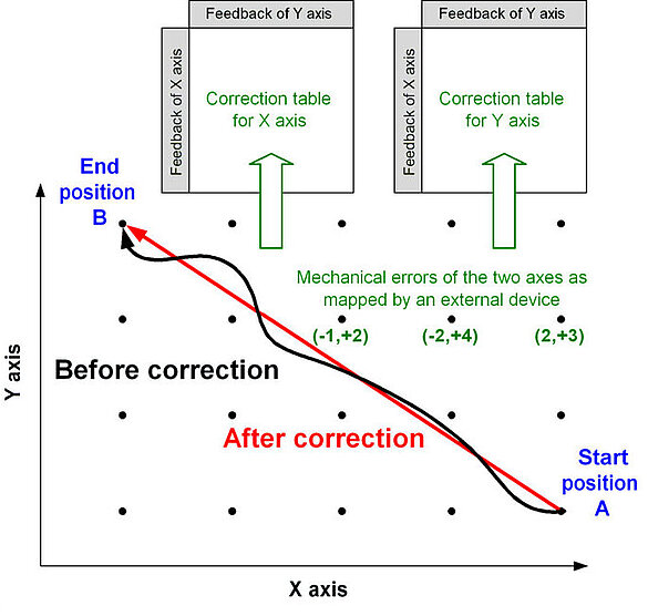 - 动态误差补偿: 参见误差映射。 通过动态误差补偿,可在运动过程中实时校正误差,而不仅仅在每次运动结束时校正。