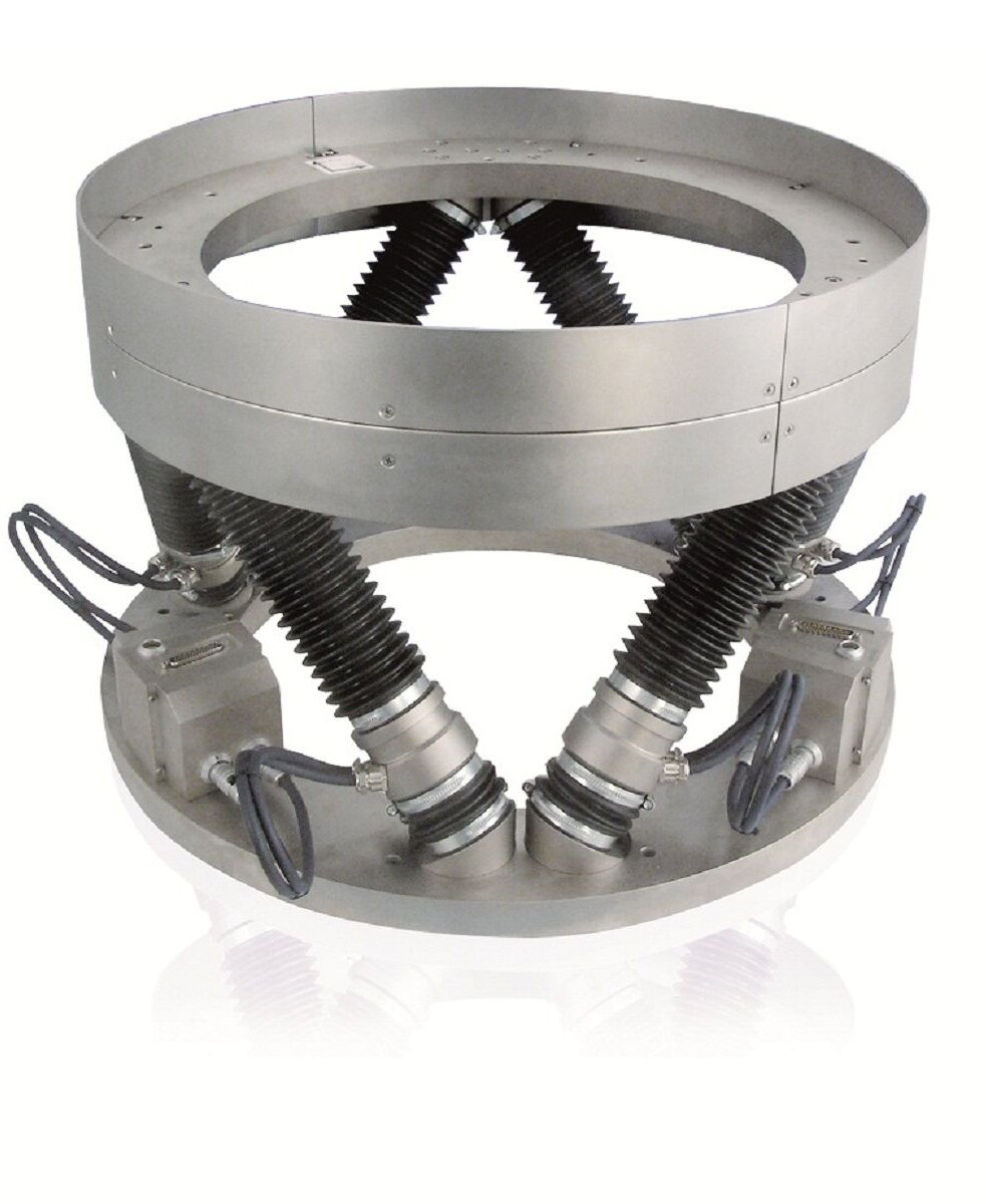 这似乎有些夸张,但利用并联运动原理可以避免所有这些问题。 这类系统不是将全部所需的轴较高地堆叠并将工件置于顶部,而是通过三足或六足位移台结构并联支撑单个工件,形成比堆叠方式更具刚性且更轻的结构。 这类系统的上佳范例采用不移动或移动很小的内部电缆,并方便地集成通向控制器的电缆。 可以消除用户调校要求,同时提供可超越某些特优单轴平台性能的精度和准确度。