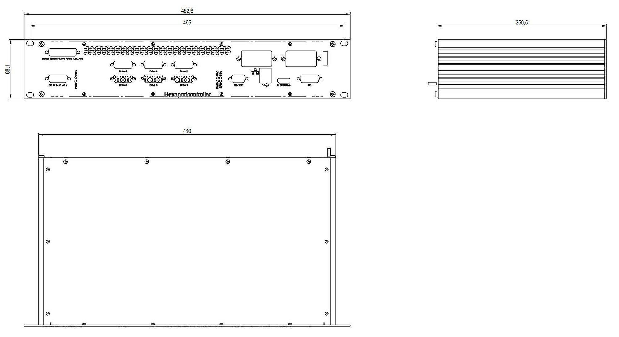 用于六足位移台的6轴控制器,集成BLDC电机驱动器,支持STO和SS1-t安全功能,TCP/IP,RS-232,19" 2RU机箱,模拟输入