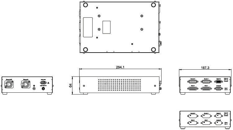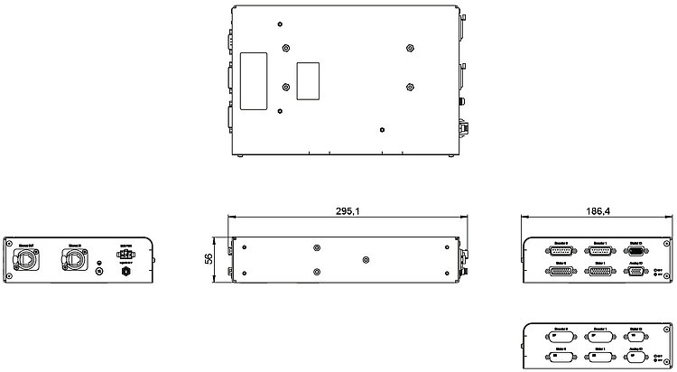 Digital I/O lines | HD D-sub 15 (f): 2 × outputs PNP 24 V source; also control the brake drivers at the motor connectors Default for inputs: 2 × PNP 24 V source on HD D-sub 15 (f); in addition 2 × NPN 5 V sinking for reference switches on the motor connectors Optional configuration for inputs: 4 × PNP 24 V source on HD D-sub 15 (f) |