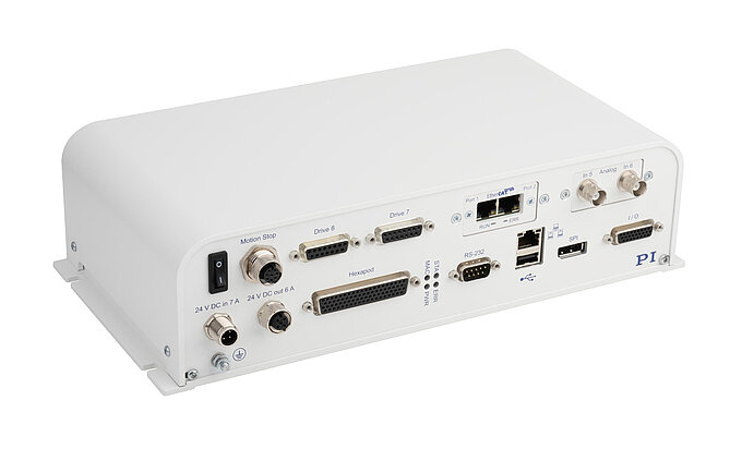 六足位移台控制器可对并联运动6自由度系统进行简单直观的控制: 所有目标位置均可在直角坐标系中进行控制。 控制器通过使用计算来控制各个支撑腿,从而实现平台的预期运动。