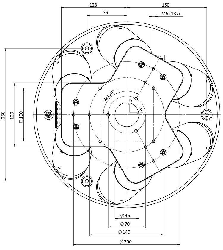 * 单个坐标(X、Y、Z、θX、θY和θZ)的行程相互依赖。本表中各轴对应的数值为其最大行程,此时其他轴和枢轴点位于参考位置。
