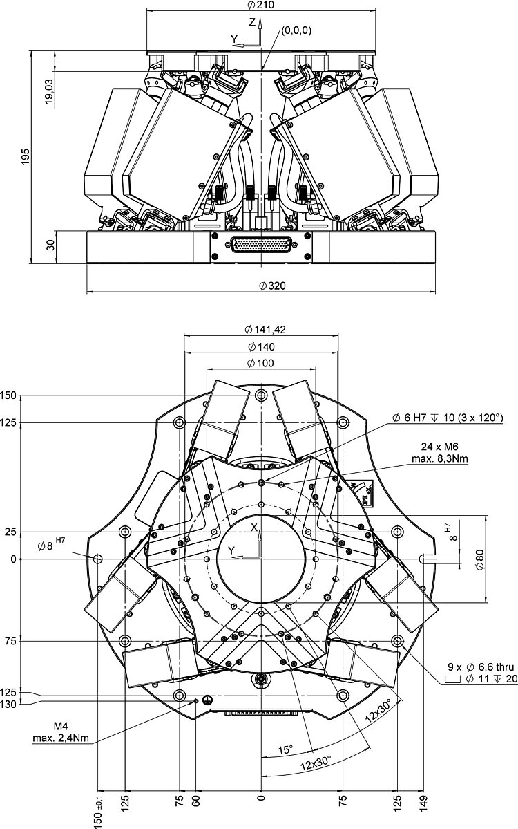 紧凑型六足位移台;无刷直流齿轮电机;绝对编码器;有效载荷为30kg;最大速度为2.5mm/s。 连接电缆不包含在发货范围内,需单独订购。