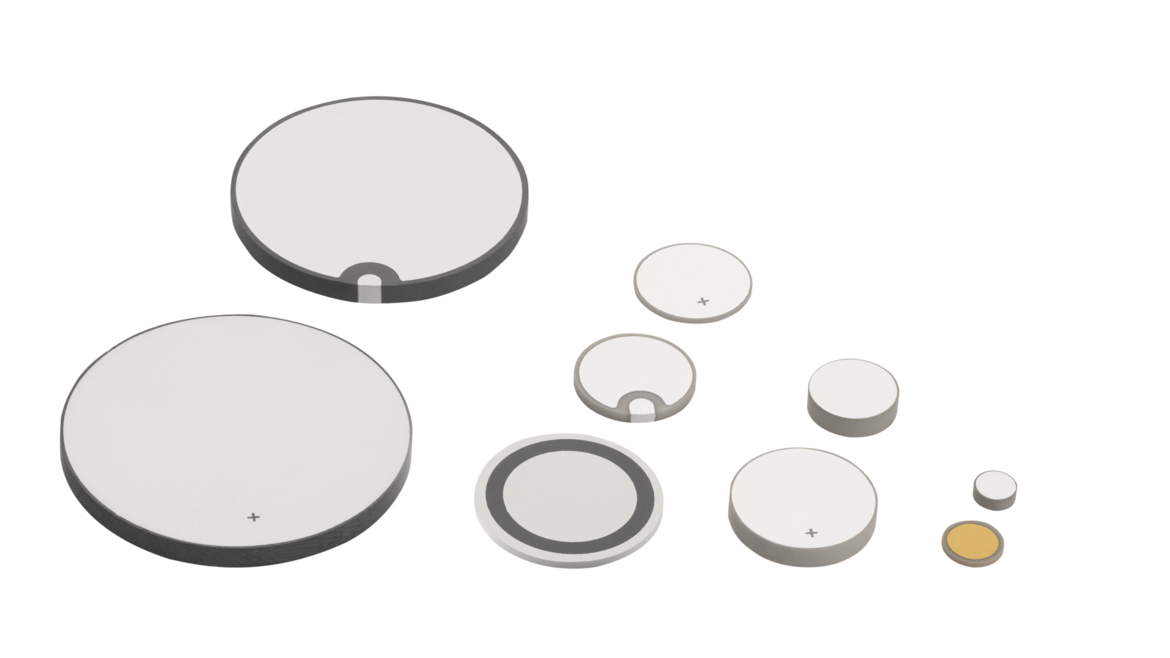 通过对压电元件进行精加工,可实现针对特定应用的个性化性能。 这些陶瓷片还可组合成更复杂的功能单元,例如换能器元件。