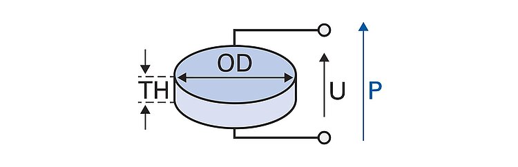压电盘,外径(OD) = 5毫米 × 厚度(TH) = 2毫米,压电陶瓷材料PIC181,丝网印刷电极(银);盘c181 o5 t2 eAg