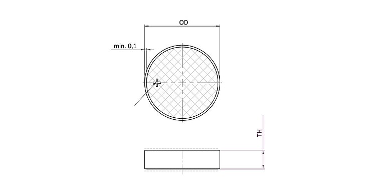 压电盘,外径(OD) = 2毫米 × 厚度(TH) = 1毫米,压电陶瓷材料PIC255,丝网印刷电极(银);盘c255 o2 t1 eAg
