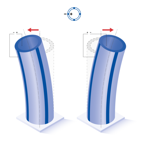 施加电压时,压电陶瓷管的直径、轴向长度和壁厚会发生变化。 通过采用分段电极设计,可借助受控弯曲实现准确横向位移。 这类高精度超迅速运动具有大范围应用场景——从微剂量分配和喷墨打印,到微小物体的准确定位、玻璃纤维操纵以及超声波生成。 通过对压电元件进行针对性优化,可实现契合特定应用的定制化特性。
