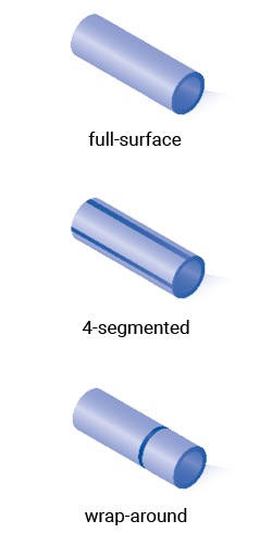 | 电极设计 | 除多分段压电管外,还可提供全表面电极、4段式及环绕式电极等设计方案, 详见右栏。 |