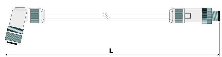 六足位移台电源电缆,拖链兼容,M12 m/f弯式,3米