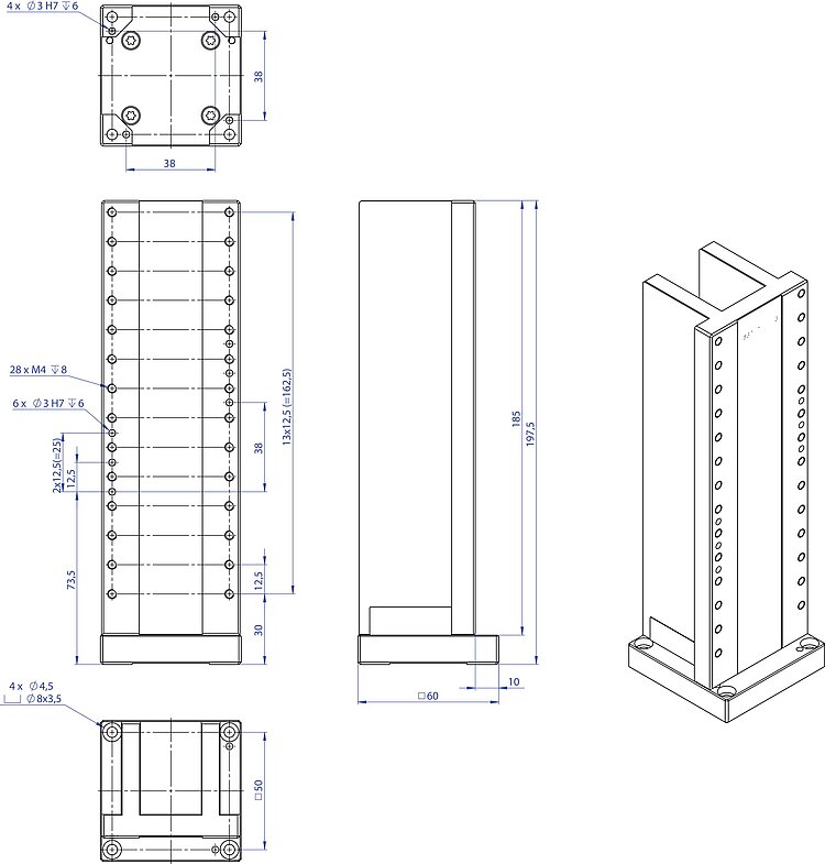 Adapter bracket for vertical mounting of L-8x6 and V-8x6 stages, length 197.5 mm, incl. mounting kit