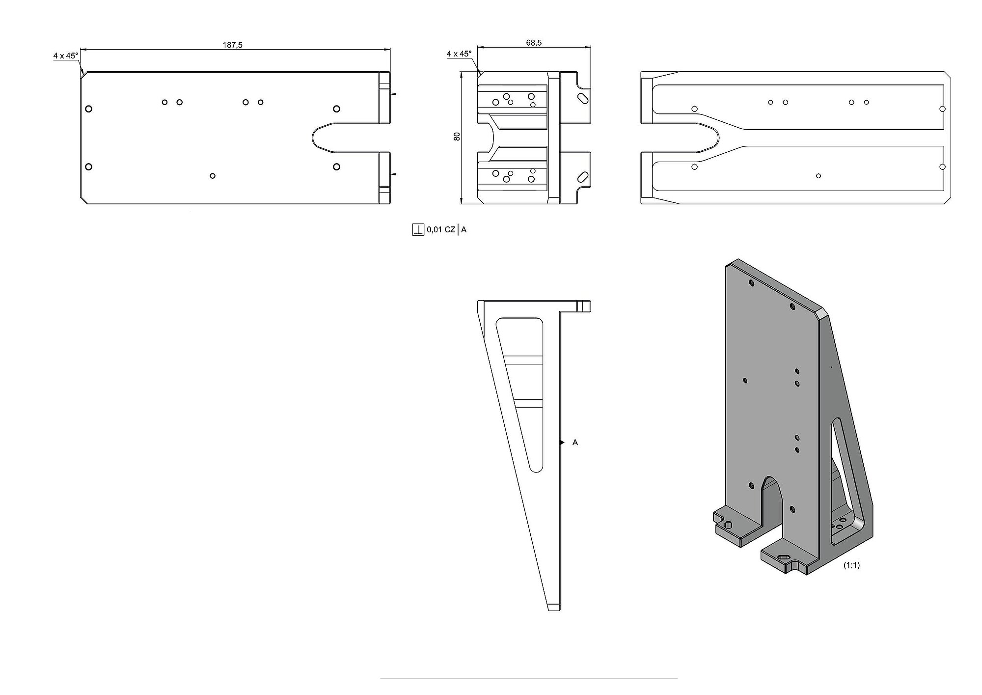 Mounting bracket for Z mounting of the N-332.14(Y) onto a N-332 linear stage; nickel-plated aluminum; including mounting kit