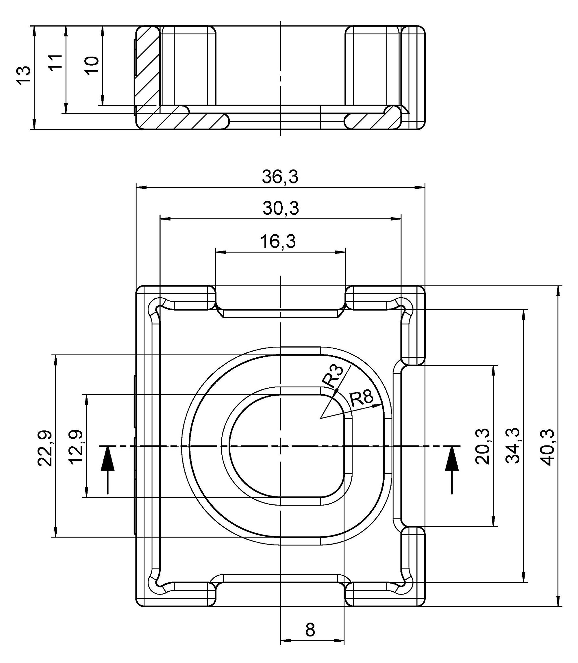 对于不带反射镜的S-335系列,对中辅助装置可用于将反射镜胶合至产品上。对中辅助装置在胶合过程中将反射镜保持在所需位置。
