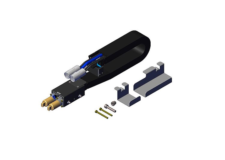 In XY assemblies consisting of V-412 or V-417 linear stages, the V-417.E1XYHxx drag chain takes over the cable management of the Y axis in X direction. For this purpose, the drag chain is mounted on the X axis.