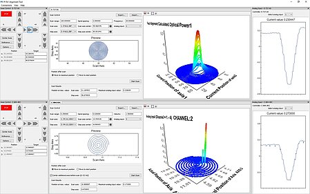 我们一些性能更强的控制器为执行不同的扫描和对准例程提供了一种可能,例如用于光纤对准应用。这些可以通过PIMikroMove中的扫描和对准功能进行配置并传输到控制器,然后通过API函数或GUI(如果需要)启动。在控制器上运行可确保非常高的性能,并允许通过我们的驱动程序和API轻松集成。